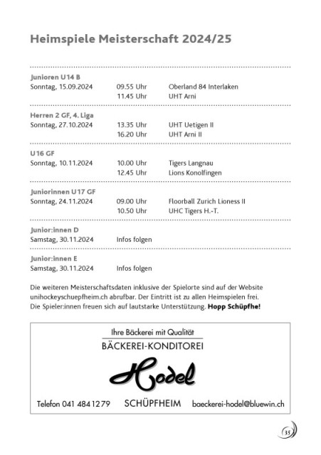 unihockeyschuepfheim.ch abrufbar. Der Eintritt ist zu allen Heimspielen frei.