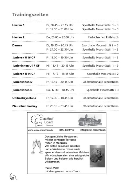 Herren 2 Do, 20.00 – 22.00 Uhr Farbschachen Entlebuch