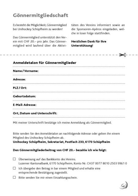ein mit CHF 20.– pro Jahr. Das Gönner- Herzlichen Dank für Ihre